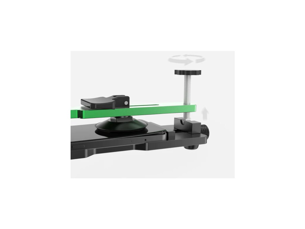 Kovová základna výrobce 2UUL pro fixaci iPhone řad 12, 13 a vyšších, sloužící k demontáži OLED displeje, případně zadních skel. Ideální použití pro bezpečnou demontáž OLED panelu z nových řad iPhone. Pro lehčí demontáž panelu doporučeno nahřát telefon, umístit do podložky a podtlakovou přísavkou lehce nadzvednout panel. Poté mezi displej a rám telefonu aplikovat několik kapek 100% IPA. Takto lze jednoduše a bezpečně demontovat OLED panel.