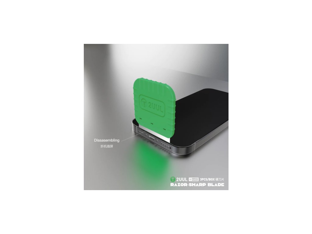 Tvrdá žiletka s hlavicí pro otevírání telefonů, demontáž LCD, zadních krytů, případně odstranění přebytků lepidla. 3 kusy v balení.