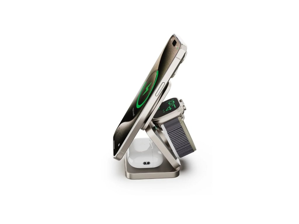 CubeNest 3v1 Qi2 Skládací bezdrátová magnetická nabíječka SQ312 Fold Pro - Titanium