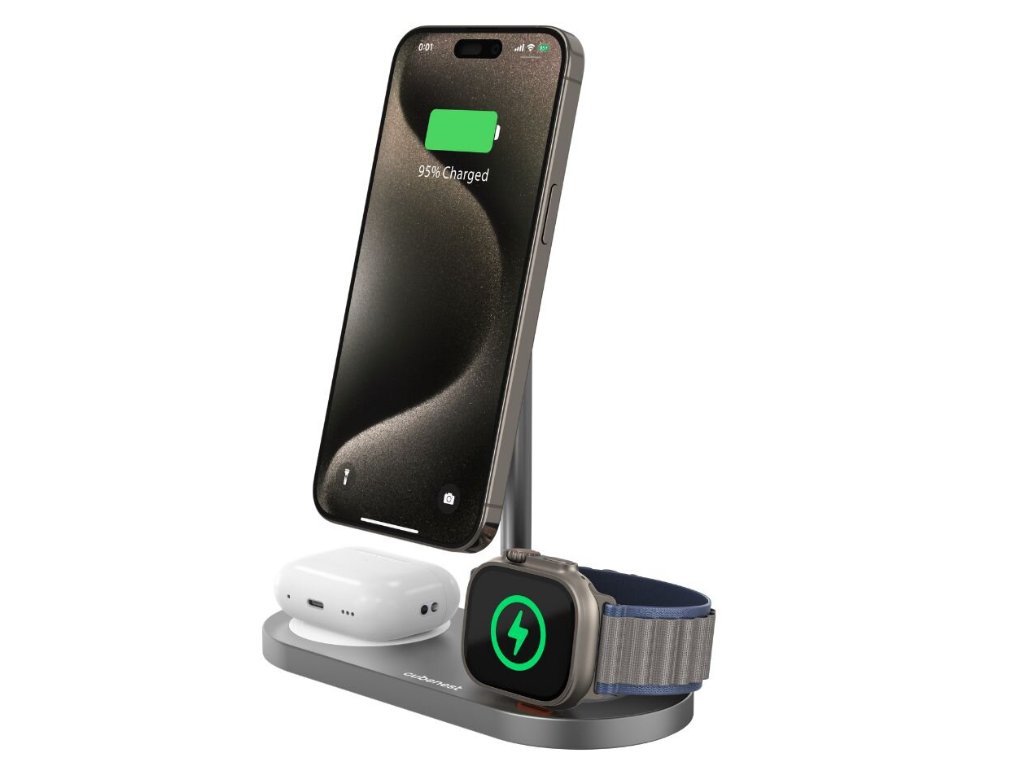 Bezdrátová magnetická nabíječka 3v1 od Cubenest je navržena k nabíjení dvou zařízení a Apple Watch současně. Zvolte kombinaci dle svých potřeb a mějte na svém stole pořádek bez zbytečných kabelů! Pohodlně a rychle nabijete ve stejnou dobu dva telefony anebo telefon a bezdrátová sluchátka a navíc Apple Watch. Produkt je kompatibilní s funkcí MagSafe, ocení ho každý uživatel (nejen) iPhonu.