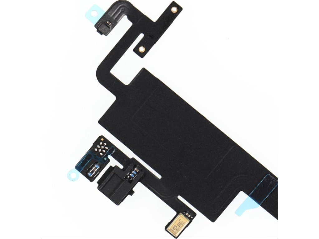 Flex kabel s proximity senzorem. Slouží pro automatickou úpravu jasu při změně světelných podmínek. Po výměně přestává fungovat funkce FaceID! Pro zachování funkce FaceID je nutno pájet senzory z původního flex kabelu, případně nové sluchátko!
