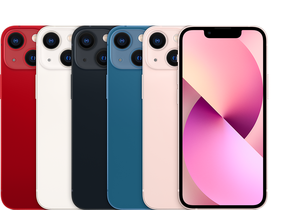 iPhone 13 má 6,1palcový Super Retina XDR displej přes celou přední stranu. Zadní strana je skleněná a rovnou hranu tvoří proužek z anodizovaného hliníku. Boční tlačítko je na pravé straně zařízení. Na zadní straně jsou dva 12MP fotoaparáty: ultraširokoúhlý a širokoúhlý. Na zadní straně je dvoudiodový True Tone blesk a na levém boku zásuvka na SIM kartu, do které se vejde karta typu 4FF neboli nano-SIM. Kód IMEI je vygravírovaný na zásuvce na SIM kartu.