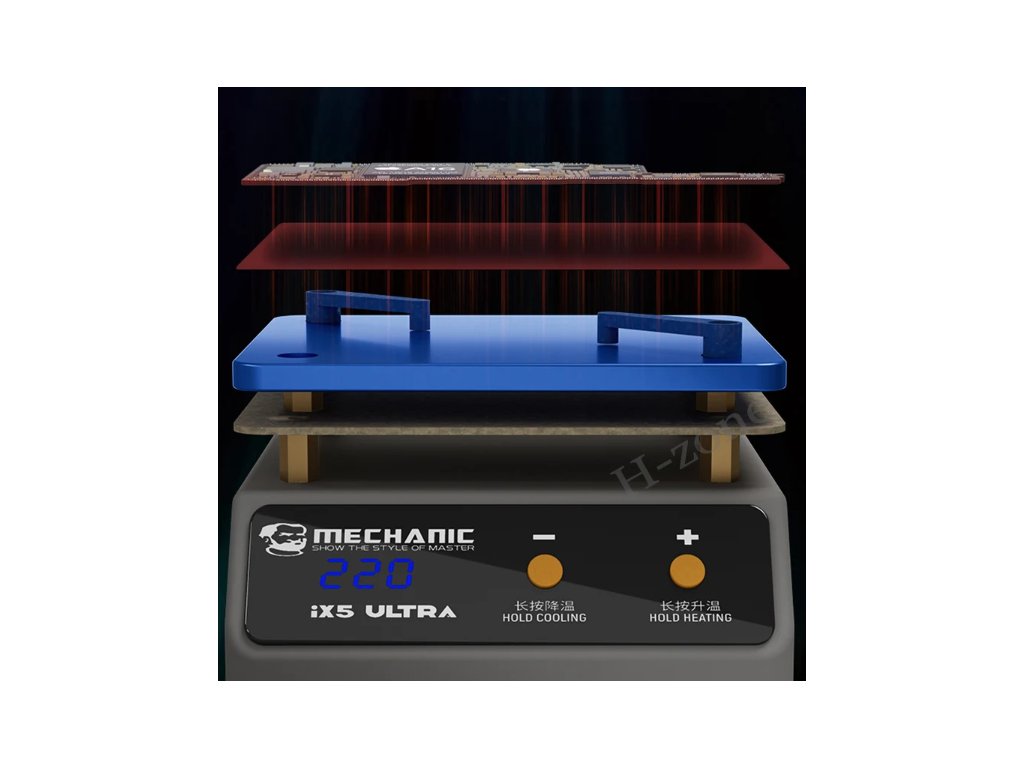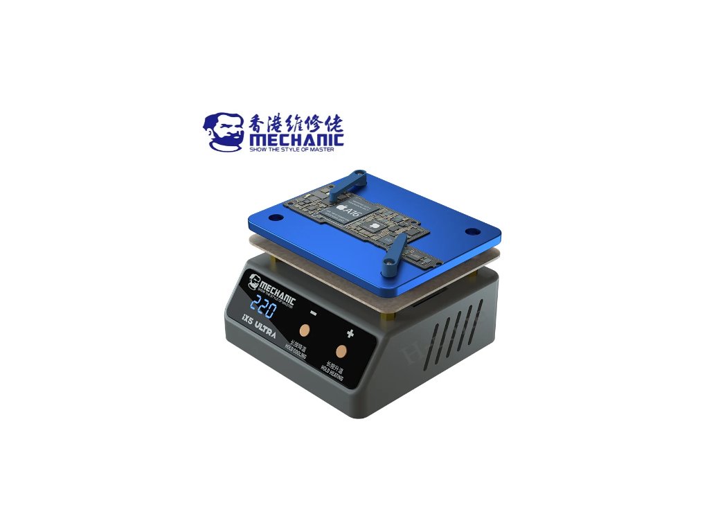 Mechanic IX5 Ultra je univerzální ohřívací platforma navržená pro různé základní desky mobilních telefonů, včetně modelů iPhone, Huawei, Samsung, Xiaomi a dalších zařízení s Androidem. Nabízí přesné a nastavitelné řízení teploty v rozmezí 20 až 260 °C, což umožňuje její použití pro různé opravy základních desek, jako je vrstvení, pájení, laminování a delaminace.
