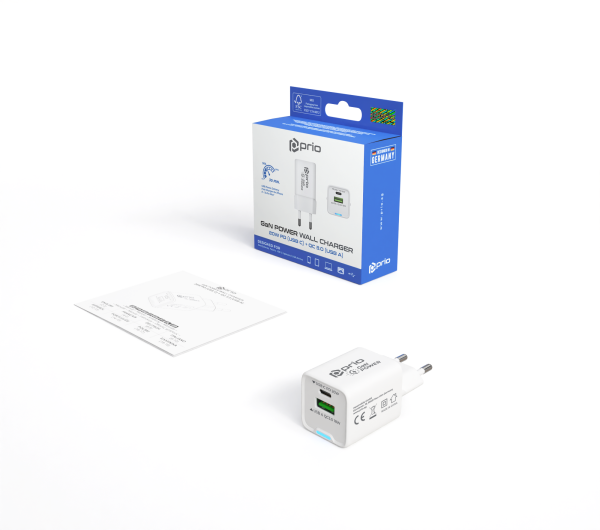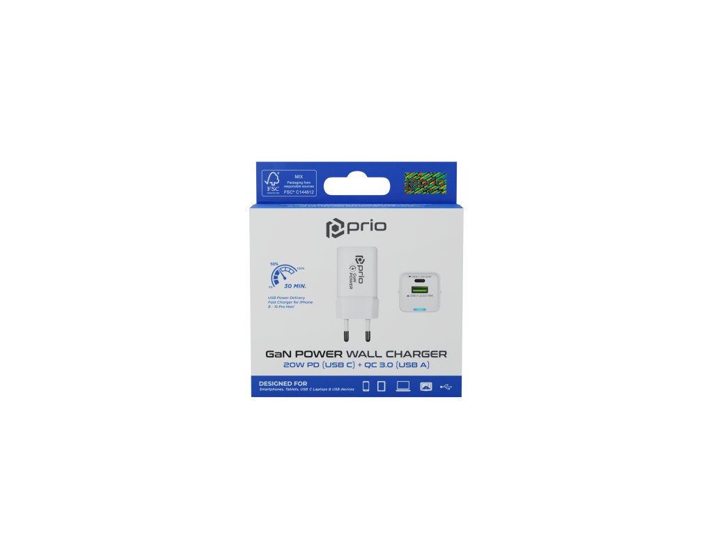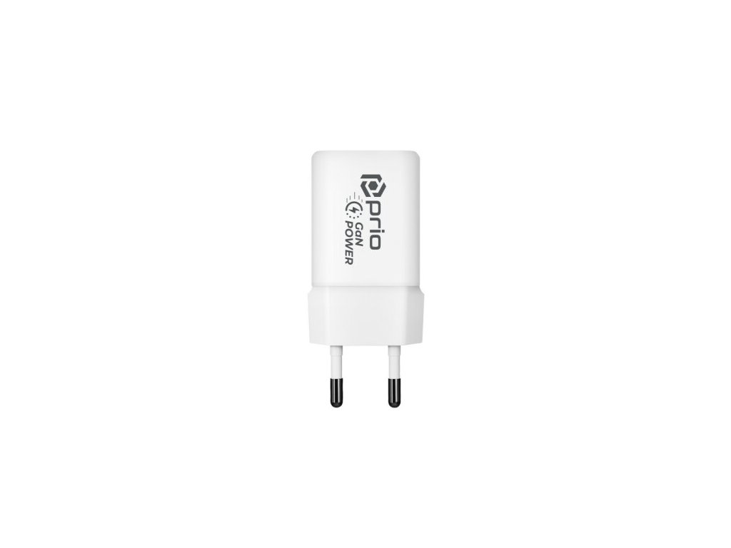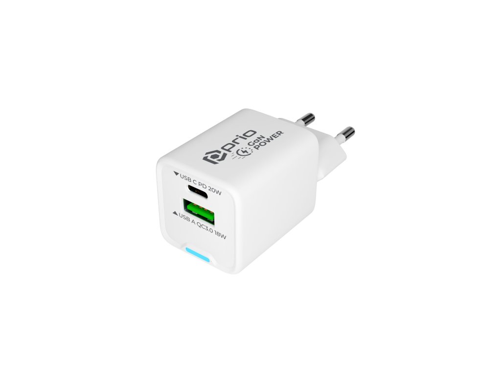 Napájecí adaptér Prio GaN 20W, PD USB-C + QC 3.0 USB-A (Bílá)