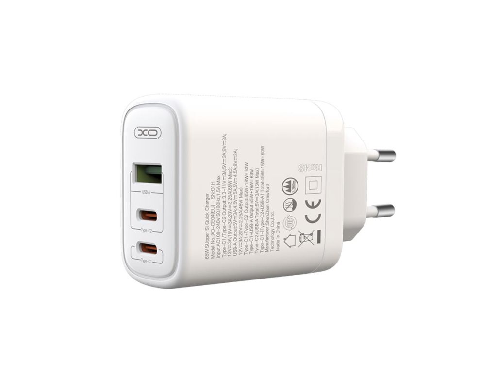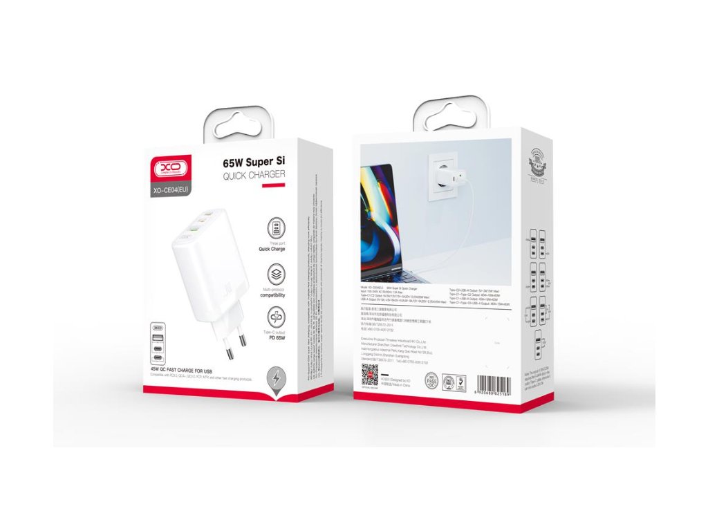 Napájecí adaptér XO-CE04 65W, 2x PD USB-C + QC 3.0 USB-A (Bílá)