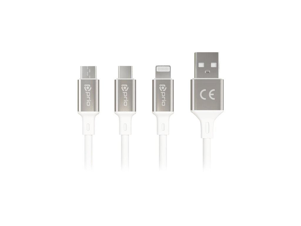 Prio datový kabel 3v1 USB C / Lightning / Micro-USB na USB-A 1,2 m bílý