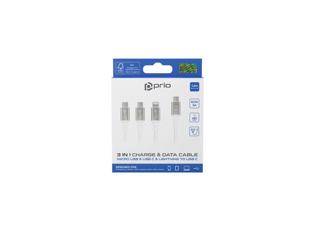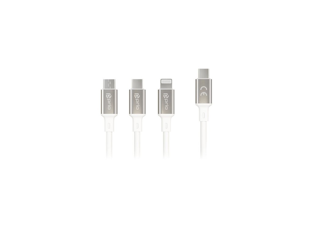 Prio datový kabel 3v1 USB C / Lightning / Micro-USB na USB-C 1,2 m bílý