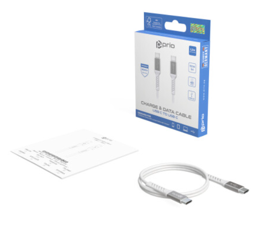 Prio datový kabel USB C / USB C 1,2 m bílý