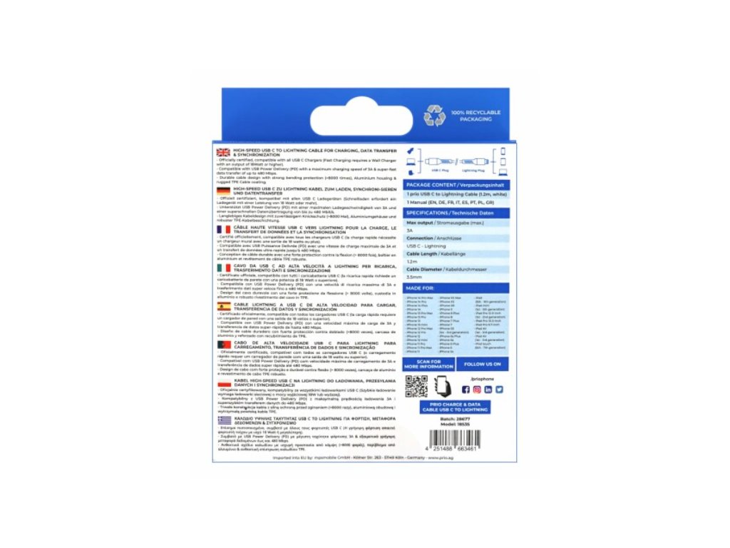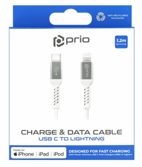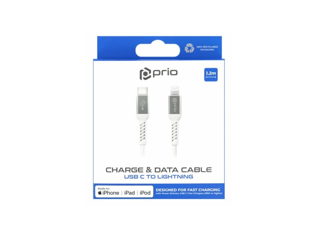 Prio MFI datový kabel USB C / Lightning 1,2 m bílý