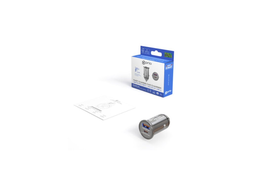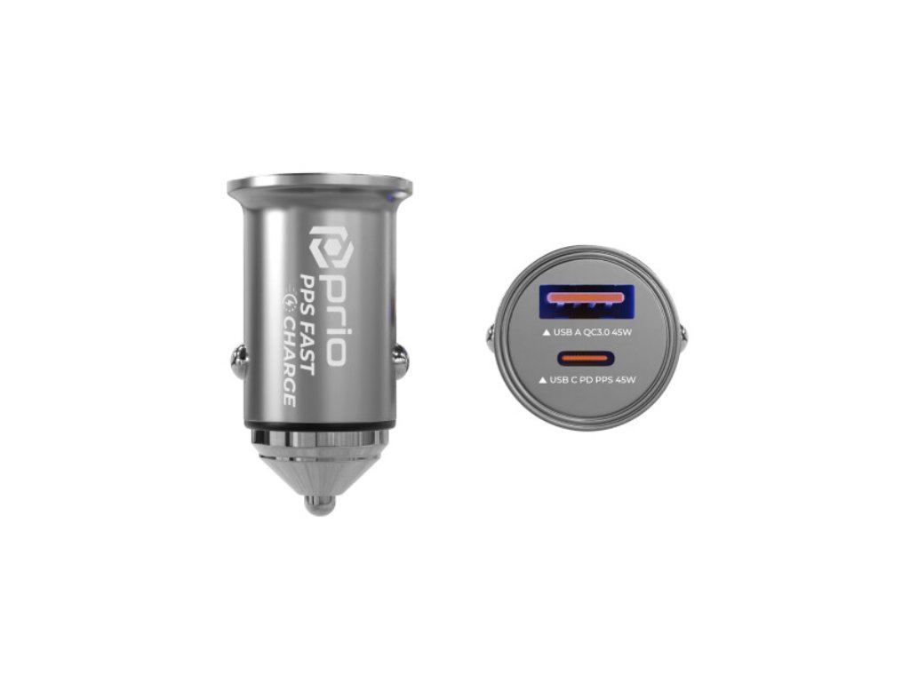 Prio napájecí adaptér do auta 45W PD USB-C + QC 3.0 USB-A (Stříbrná)