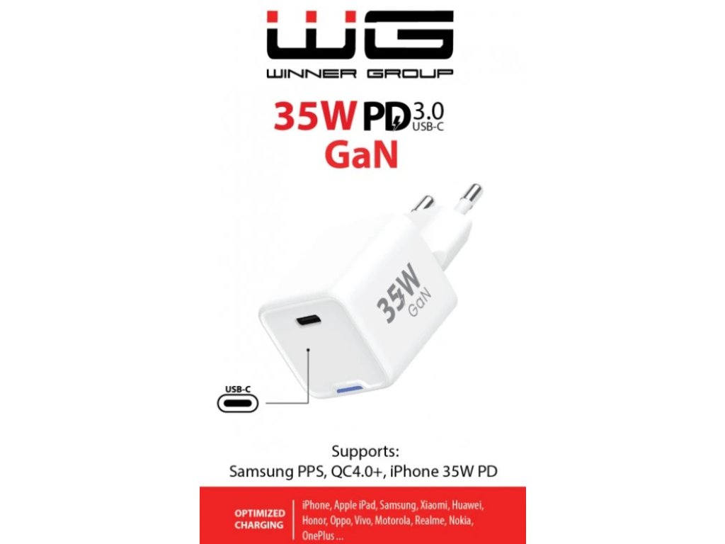 Síťová nabíječka 1xUSB-C/PD 35W bez kabelu (Bílá)