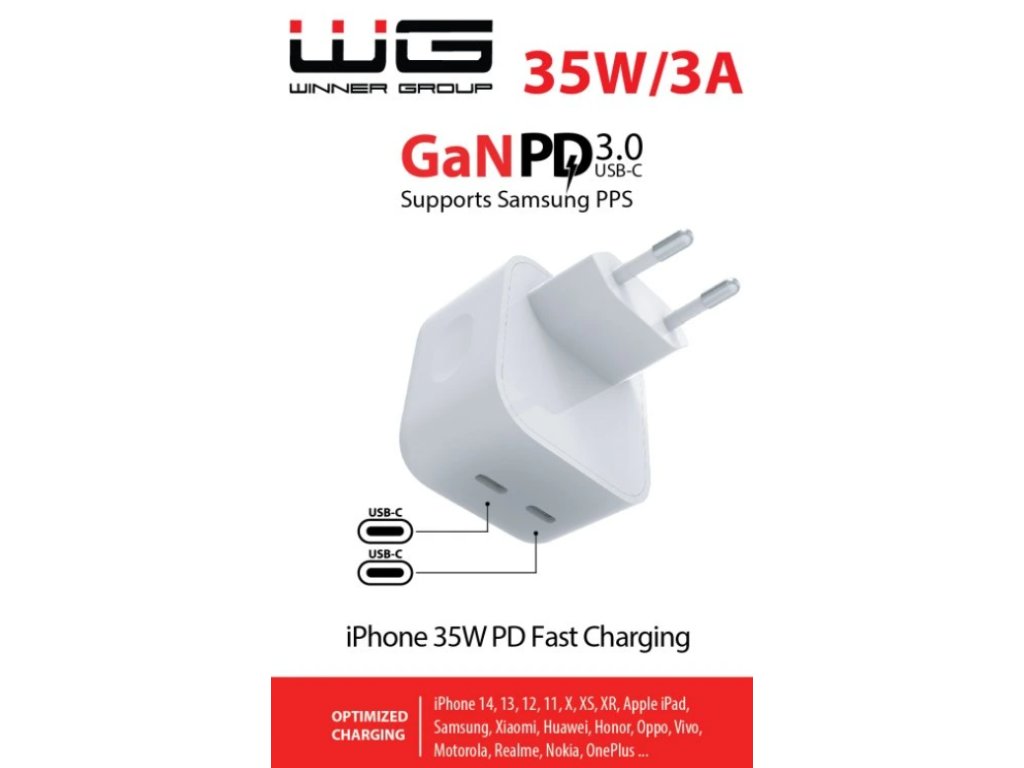 Tato síťová nabíječka s výkonem 35W je vybavena dvěma USB-C porty, které umožňují rychlé a efektivní nabíjení dvou zařízení současně. Ideální pro chytré telefony, tablety a další elektroniku, nabíječka poskytuje stabilní výkon a ochranu proti přehřátí a přepětí. Její kompaktní design zajišťuje snadnou přenositelnost, ať už ji používáte doma, v kanceláři nebo na cestách. Elegantní bílá barva dodává nabíječce moderní vzhled, který se hodí do jakéhokoli prostředí. Tato nabíječka je perfektním řešením pro uživatele, kteří potřebují rychlé a bezpečné nabíjení více zařízení současně.