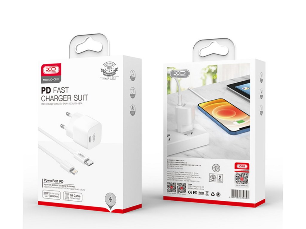 Síťová nabíječka XO-CE01 20W s kabelem USB-C / Lightning (Bílá)