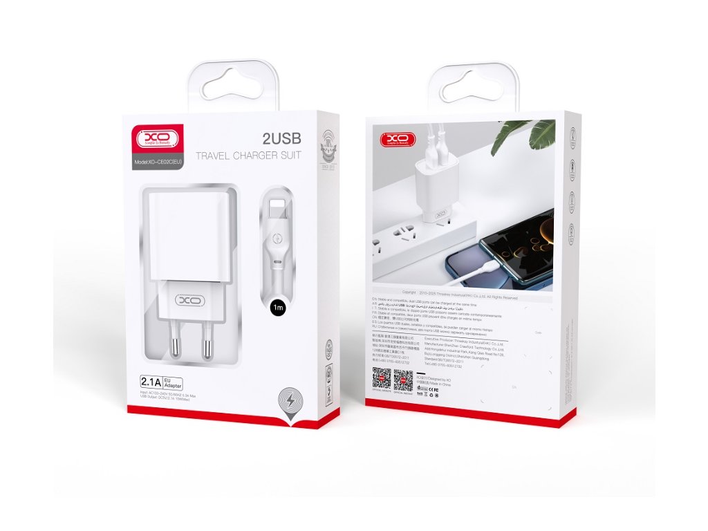 Nabíječka XO CE02C je vybavena dvěma USB porty, které poskytují maximální výstupní proud 2,1 A, což umožňuje nabíjet dvě zařízení současně. Kompaktní a lehký design usnadňuje přenášení a použití doma, v kanceláři nebo na cestách. Součástí balení je microUSB kabel o délce 1 metr, který je kompatibilní s většinou mobilních zařízení, jako jsou smartphony, tablety či příslušenství. Bílá barva a elegantní provedení nabíječky zaručují, že skvěle zapadne do každého prostředí.