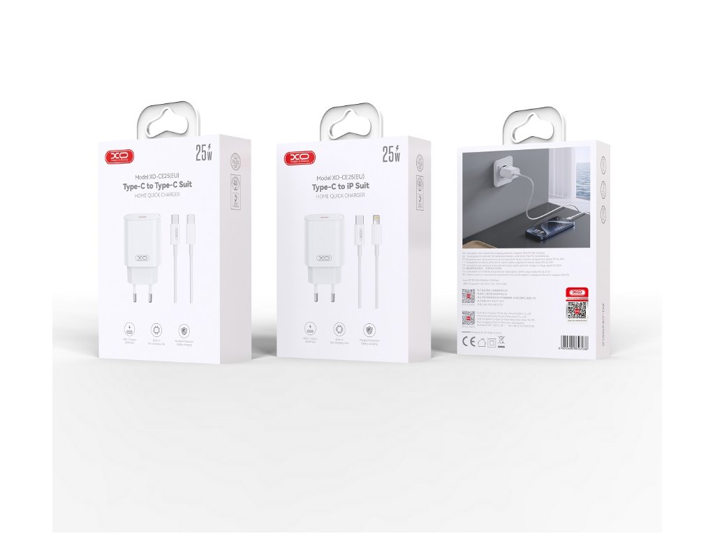 Síťová nabíječka XO-CE25 25W s kabelem USB-C / Lightning (Bílá)